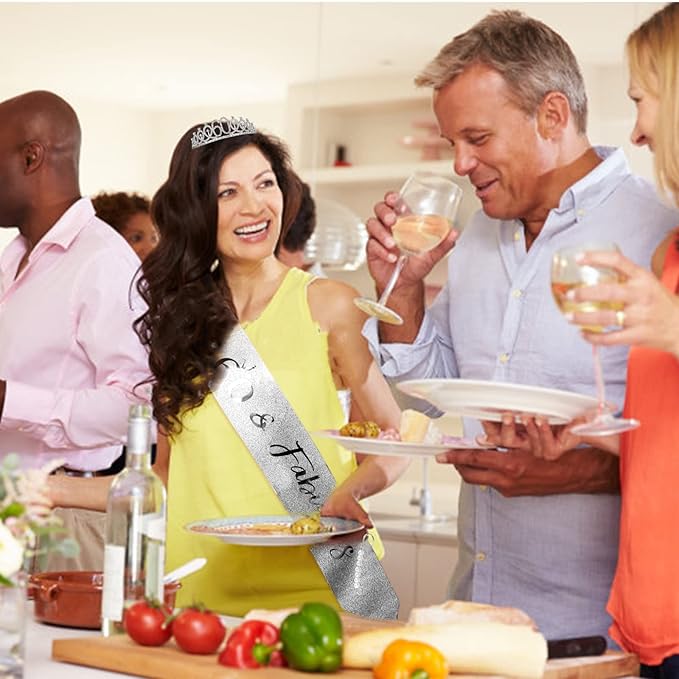 "60 & Fabulous" Birthday Tiara and Sash Kit- 60th Birthday Gifts for Women 60th Birthday Party Decorations (silver)
