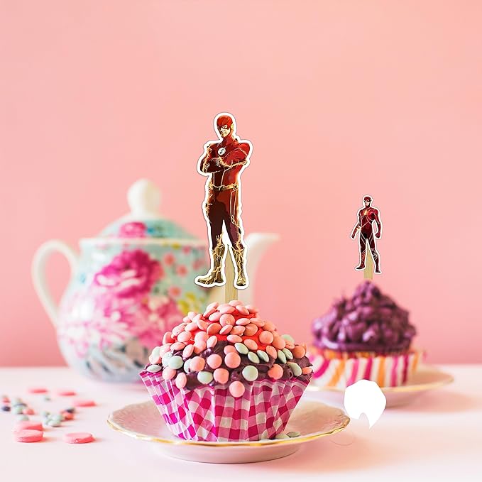 - ⚡ Superhero Lightning Design – Features Flsh’s bold red and yellow lightning bolt style, instantly turning cupcakes into action-packed party treats.